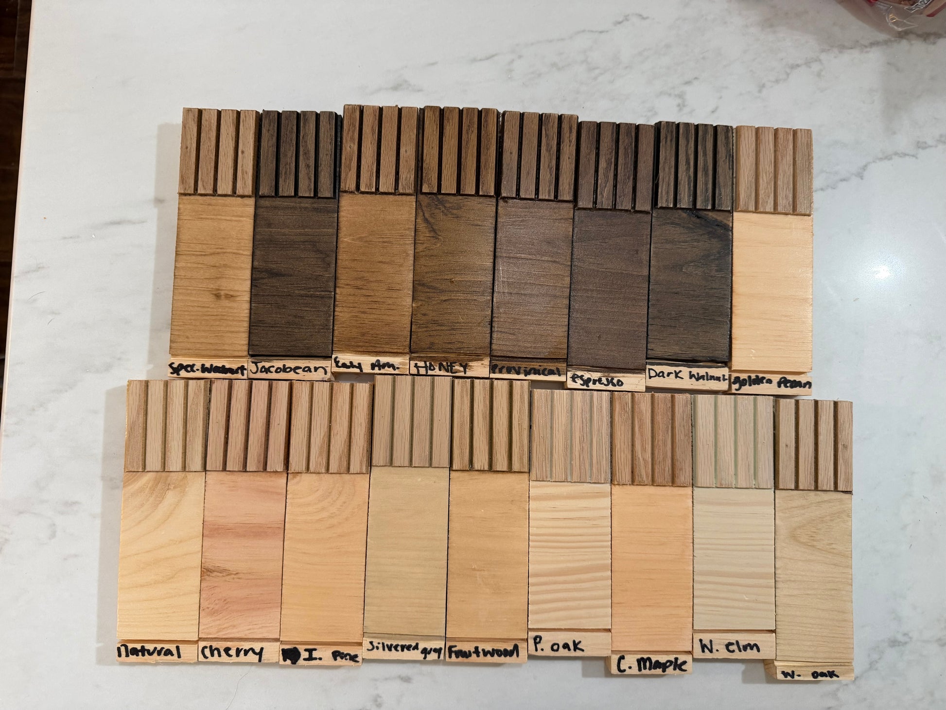 Pine shelving with oak decorative veneering on the front. Every shelf is hand made to order from our shop in PA. Hidden mounting hardware included in purchase. Each shelf is sold separately, lead times are about two weeks from date of order to date of shipping. Sizing is listed as DepthLength.